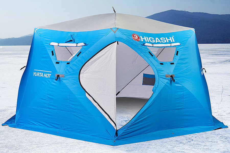 Утепленная палатка для зимней рыбалки шестиугольной формы Yurta HOT – самая большая модель в линейке HIGASHI. Палатка отличается исключительным качеством исполнения и вниманием производителя к деталям. Автоматический каркас из прочного фибергласса с металлическими хабами позволяет быстро установить палатку одному человеку за короткий срок. Габариты оптимальны для комфортного размещения 6-8 человек, при этом высота позволяет свободно стоять в полный рост. Поместится внутри также раскладушка, печка и снаряжение. Для выведения вытяжной трубы можно дополнительно приобрести специальную огнеупорную врезку, встраиваемую вместо одного из окон.